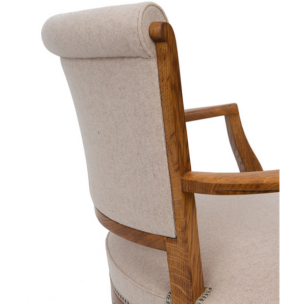 Pair of elegant 'Ledroua' model armchairs in oak, upholstered in light beige fabric.